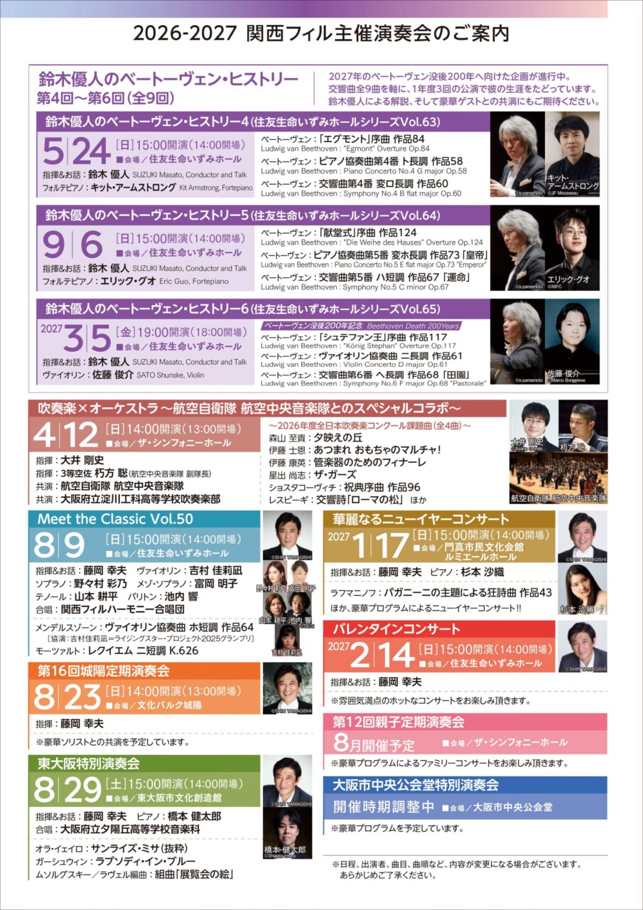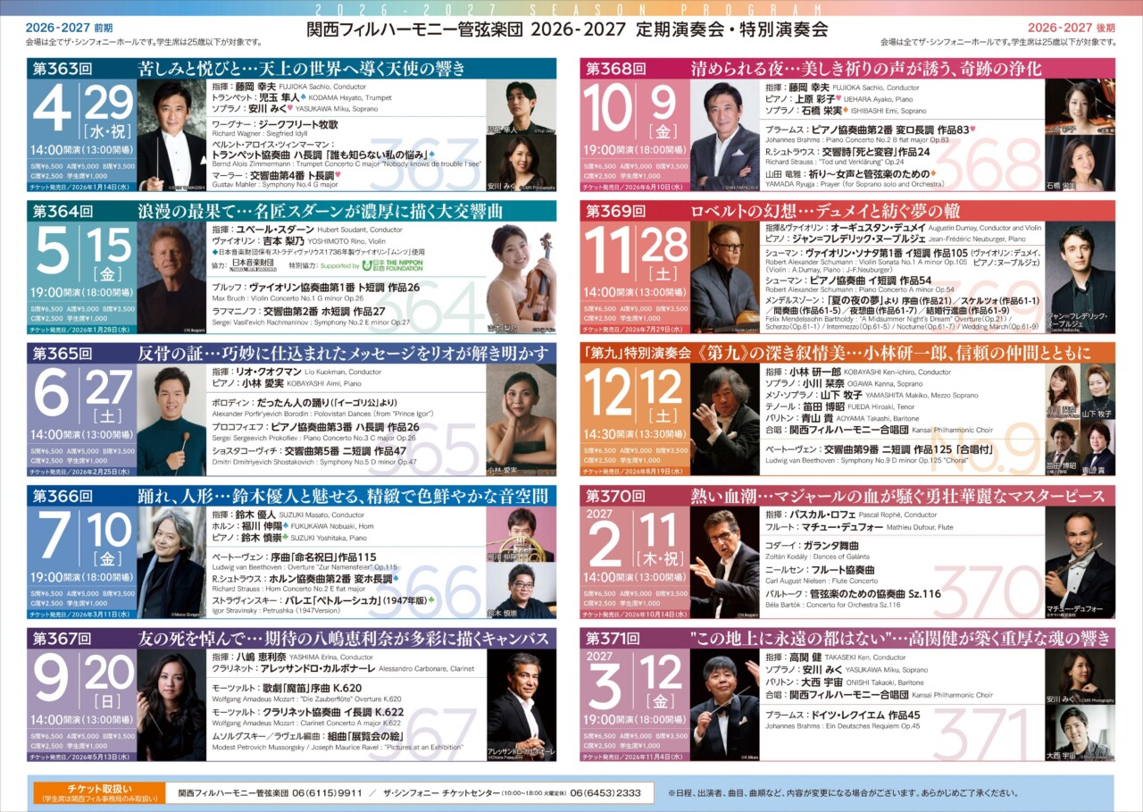 11月26日大阪4オケ共同記者発表会に先駆けまして、2026-2027シーズンプログラムを発表いたします。