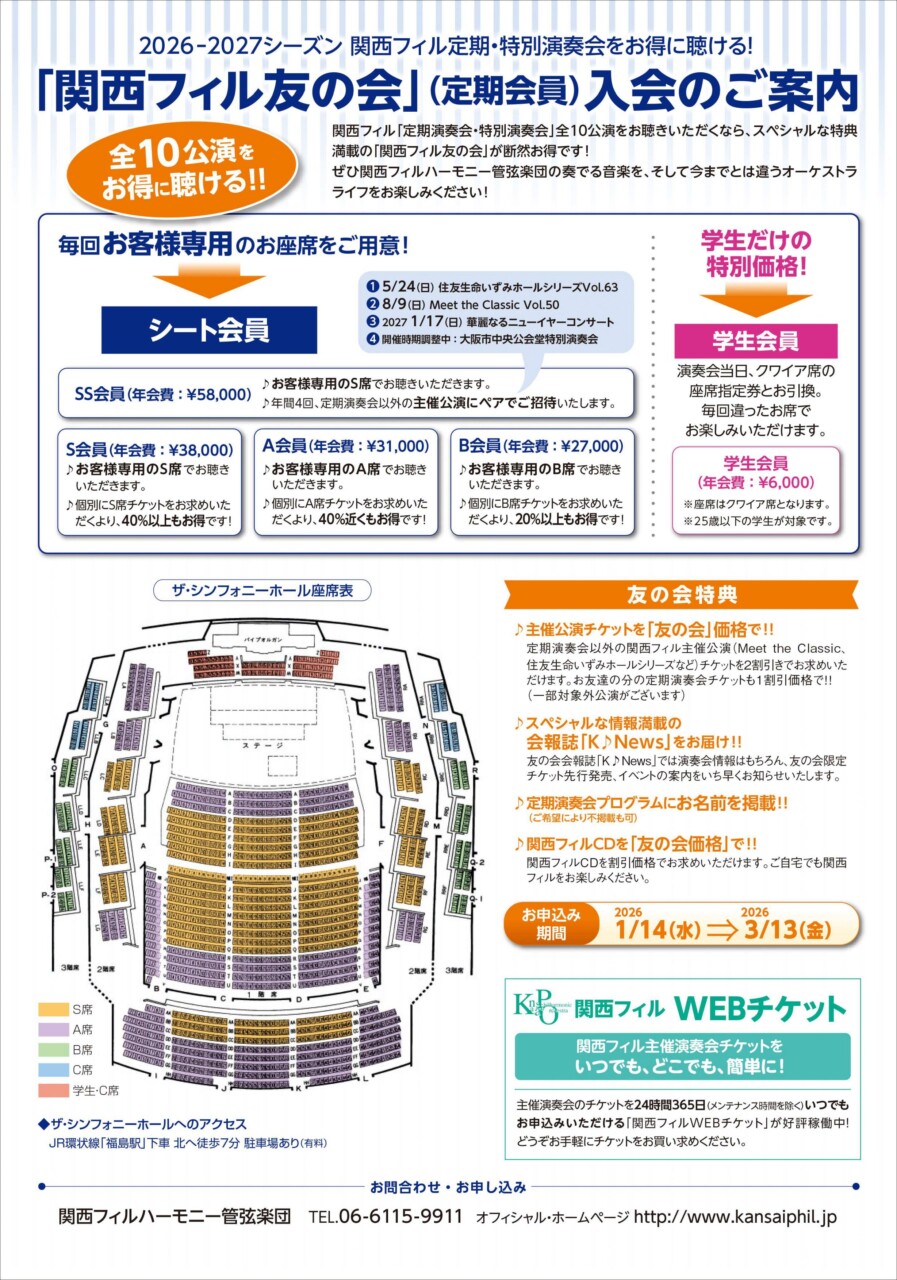 関西フィル友の会(シート会員)のお申し込みの受付は、